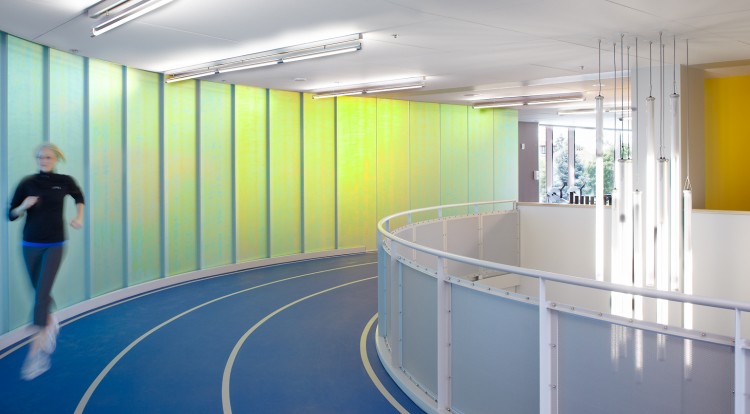 Major building elements include: aerobics exercise pool, saunas, whirlpool spas, locker room facilities, 15,000-square-foot fitness equipment area, including free weights, laboratory fitness equipment area, with calibrated and specialized fitness equipment for prescribed programs, walking/running track, nutritional kitchen producing take-home prescribed meals, demonstration kitchen, bistro area, 20 clinical exam rooms, two minor procedure rooms, -80 degree freezer farm with alarmed UPS system for tissue storage, blood work laboratory, testing labs, DEXA room, physician and intern offices and conference rooms, and a board room opening out to roof garden for events.