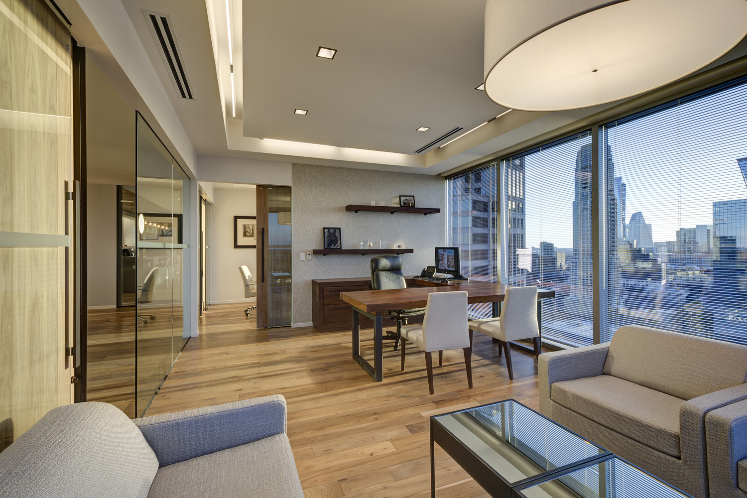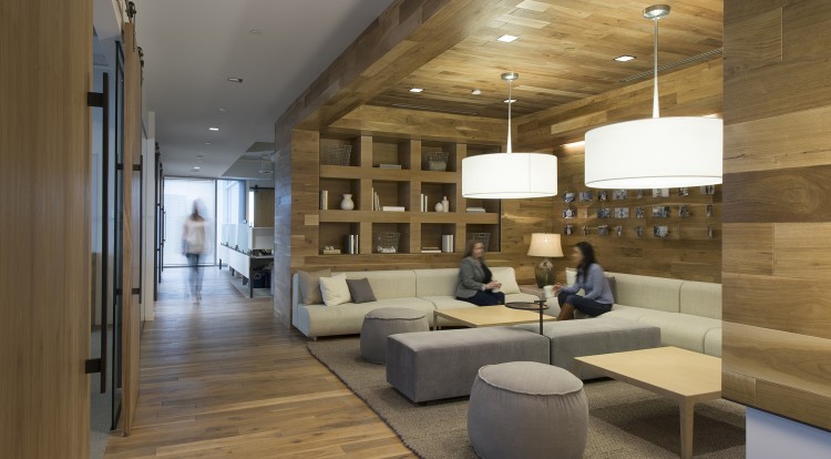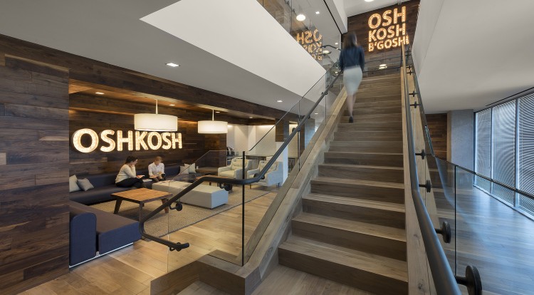 Carter’s 275,000-SF space highlights the company’s heritage of quality, innovation, and value on each of its floors. As each brand under the Carter’s, Inc. umbrella is unique; the design scheme of each floor accounts for this with different materials and colors schemes. Each floor includes a library for informal gatherings equipped with a coffee bar and seating area. Features throughout the spaces include custom mobile product display cases, extensive use of glass wall systems, wood wall and ceiling systems, high-end lighting, and over 100,000 SF of walnut wood flooring. Two grand staircases allow easy transition from floor to floor, encouraging employee collaborating and connectivity.