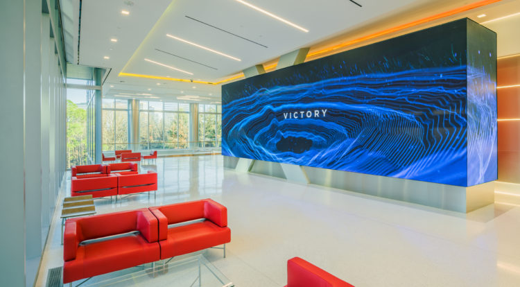 Telecommunications leader Comcast relocates their regional headquarters to a space designed to further support the global largest broadcasting and cable company. Overlooking the Atlanta Braves’ SunTrust Park, the space houses over 1,000 Comcast employees in a dynamic office space that intertwines innovation, technology, and growth. As a technology development hub, the headquarters office provides a home for the company’s growing workforce of technologists, engineers, and software architects.