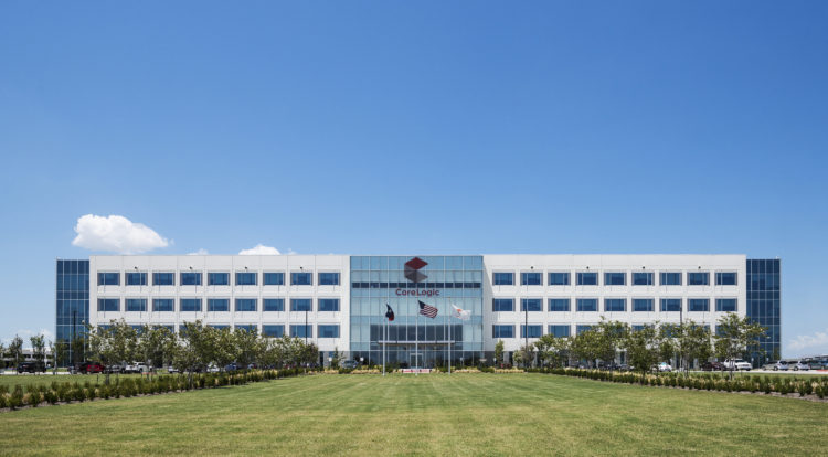 Part of the Cypress Waters development in Dallas, Texas, this 327,000 SF 4-story shell tilt-wall office and parking garage serves as a new regional headquarters for CoreLogic bringing 1,300 local employees from the existing Westlake and Richardson locations. The embedded CoreLogic logo on the building was achieved through the use of a fritted glass technique whereby the color is integral of the glass and not a decal or applied sticker. Rogers-O’Brien documented 49 weather-delay days during the construction of this project. The entire building site was matted to prevent sinking and sandbags used. Even with significant weather delays the building was delivered on time. Through buy-out savings Rogers-O’Brien was able to return $640,992 to the owner which they used for tenant-improvement upgrades.