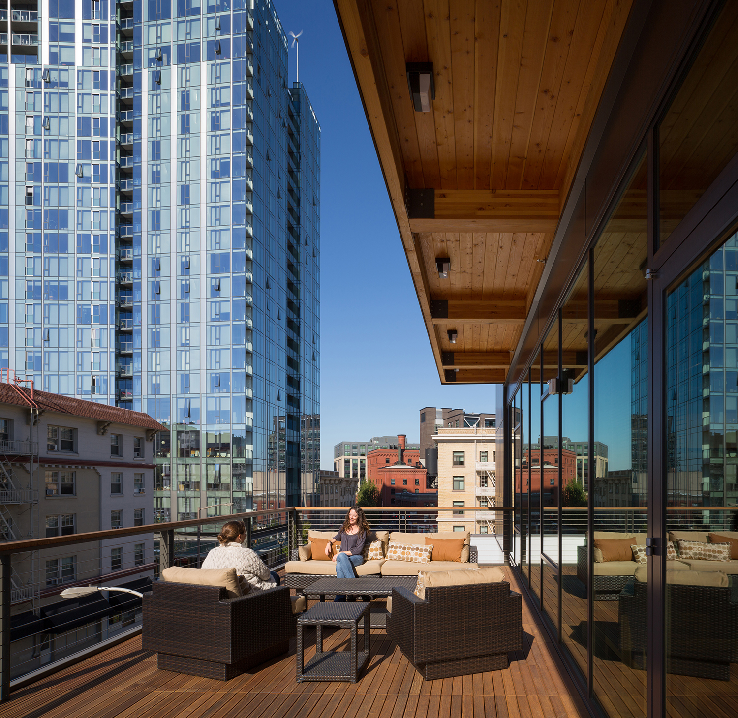 Originally built in 1910 for industrial use, the Culver Building was completely renovated by Lewis in 2012. Work included adding a penthouse, roof deck, new glazing systems, elevator, restrooms, and HVAC system. The LEED Silver space largely consists of unique meeting areas and features an open concept to encourage collaborative teamwork. Hoteling stations, high-tech conferencing rooms, informal huddle spaces and outdoor meeting spaces promote connectivity and innovation.