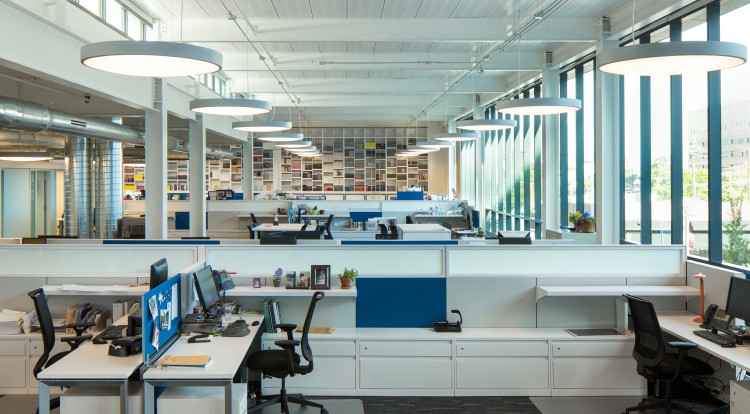 The first two floors consist of open office areas, conference rooms and break rooms. Located in the center of each floor are the conference rooms and break room. This area is known as the “Heart Beat Zone.” It is divided into 4 separate areas symbolically representing the chambers of a human heart.