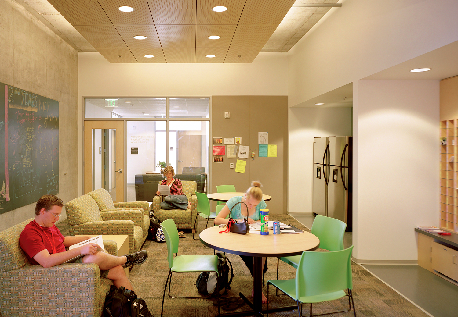 Lewis built this Health Professions Campus in two phases. Phase I included a five-story facility to house health professions graduate programs, the Virginia Garcia Clinic and a pharmacy. During Phase II, Lewis constructed an adjacent building which accommodates 700 students and 80 faculty and staff members. To achieve LEED Gold certification Lewis employed green building practices, including recycling 97% of construction waste (Phase I) and a rainwater harvesting system, which has helped to reduce water consumption by nearly 50%.