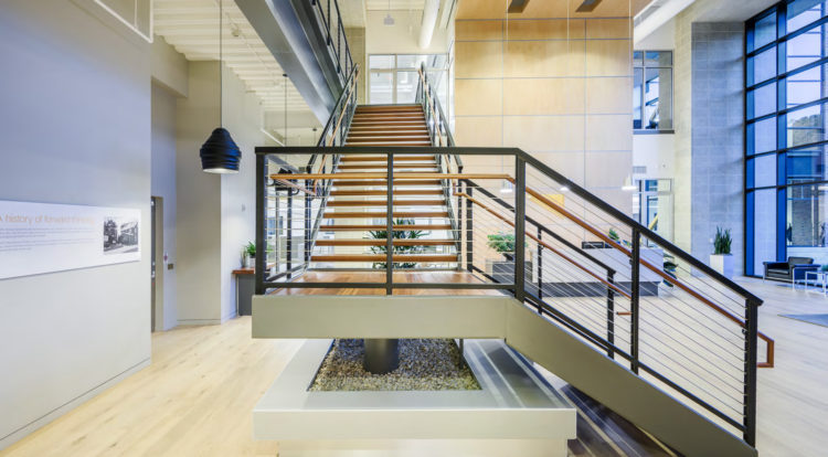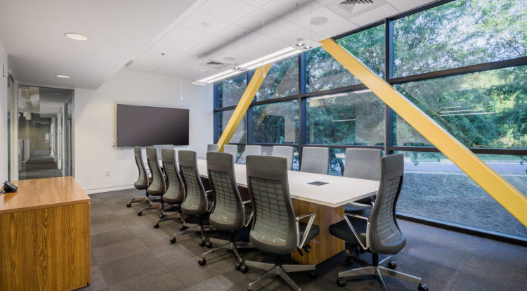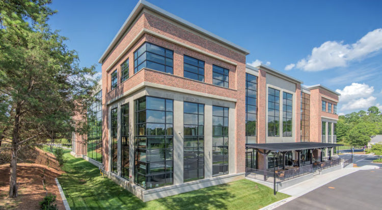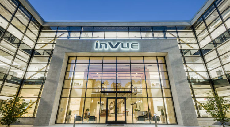 Founded in 1974, InVue Security is a global leader in developing innovative products that focus on preventing retail theft for today’s newest technology. These security devices protect merchandise on display in retail stores in the video, music, wearable technology, and personal device industries. InVue more than doubles its footprint in the Charlotte, NC area with this corporate headquarters campus. The campus houses a research and development lab, product testing lab, quality control operations center, main IT hub, and data center for their worldwide operations. The corporate headquarters features a striking building with three floors above grade and a below-grade basement. The basement level is constructed of cast-in-place concrete, creating the foundation for the three floors above which are comprised of structural steel with exposed steel brace framing. Substantial masonry work and glass curtain wall make up the building’s exterior façade. Two elevators service the central core of the building. Sitework includes ample parking for InVue’s employees and visitors.