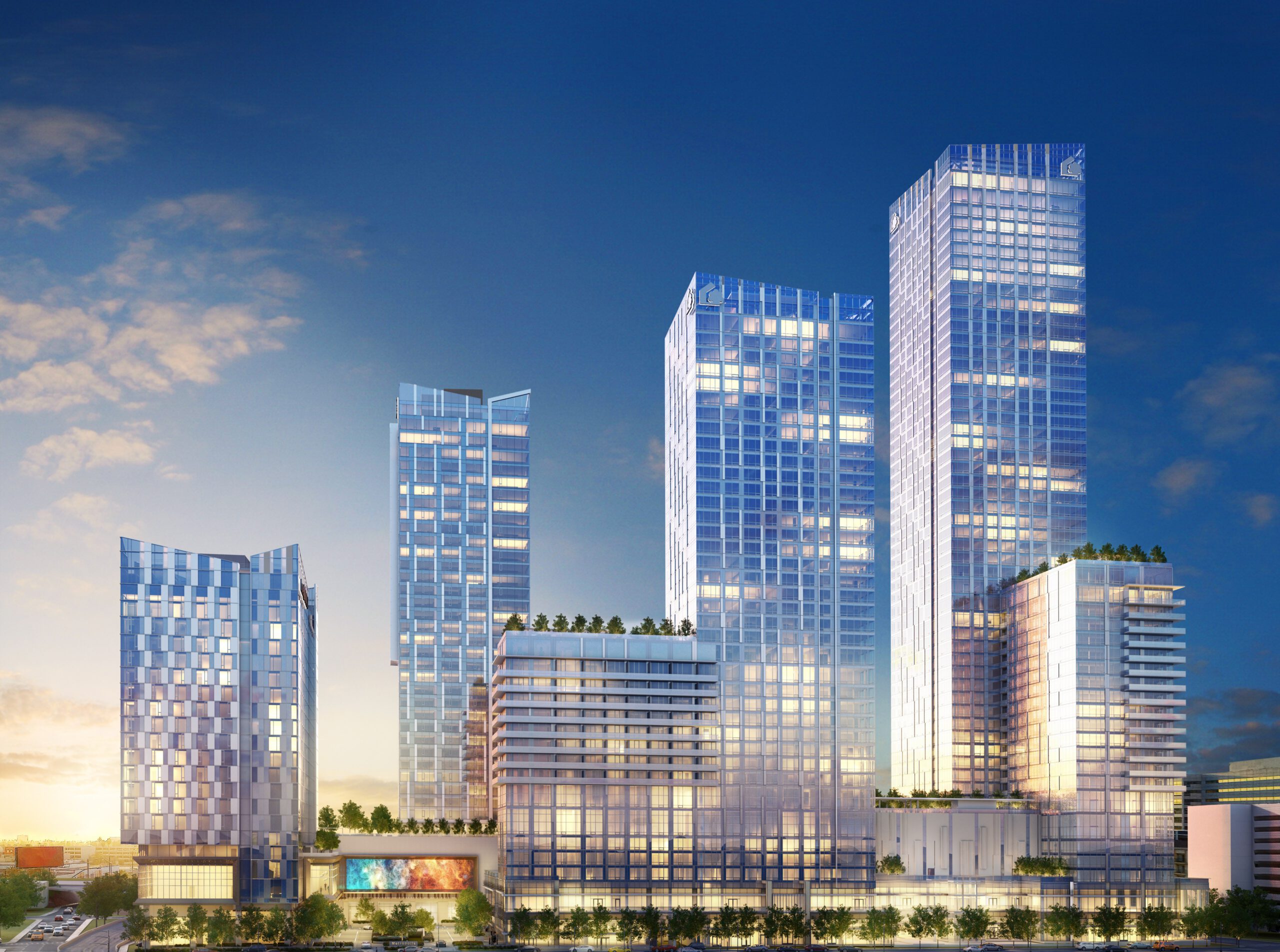 Located on the north side of the site along Eighth Street, Pankow-PENTA JV will construct the Phase 2 Residential Tower 3 with retail comprised of 775 condominium units and 63 floors (approximately 671 feet tall including the podium). With up to 853,309 SF of floor area, Tower 3 tower will have an associated amenity deck on the roof of the podium. The deck features a pool, roof garden, and fitness center for exclusive use by tower residents. The building will also have a smaller deck on the roof of this tower’s lower stack on or near the 26th floor.