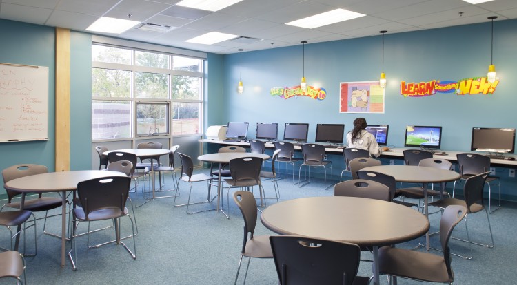 The warm and welcoming facility includes a learning lab, tech lab, arts and crafts room, gymnasium and locker rooms, dining area and kitchen, games room, teen center, community room, conference room, and other associated spaces, as well as parking and landscaping.