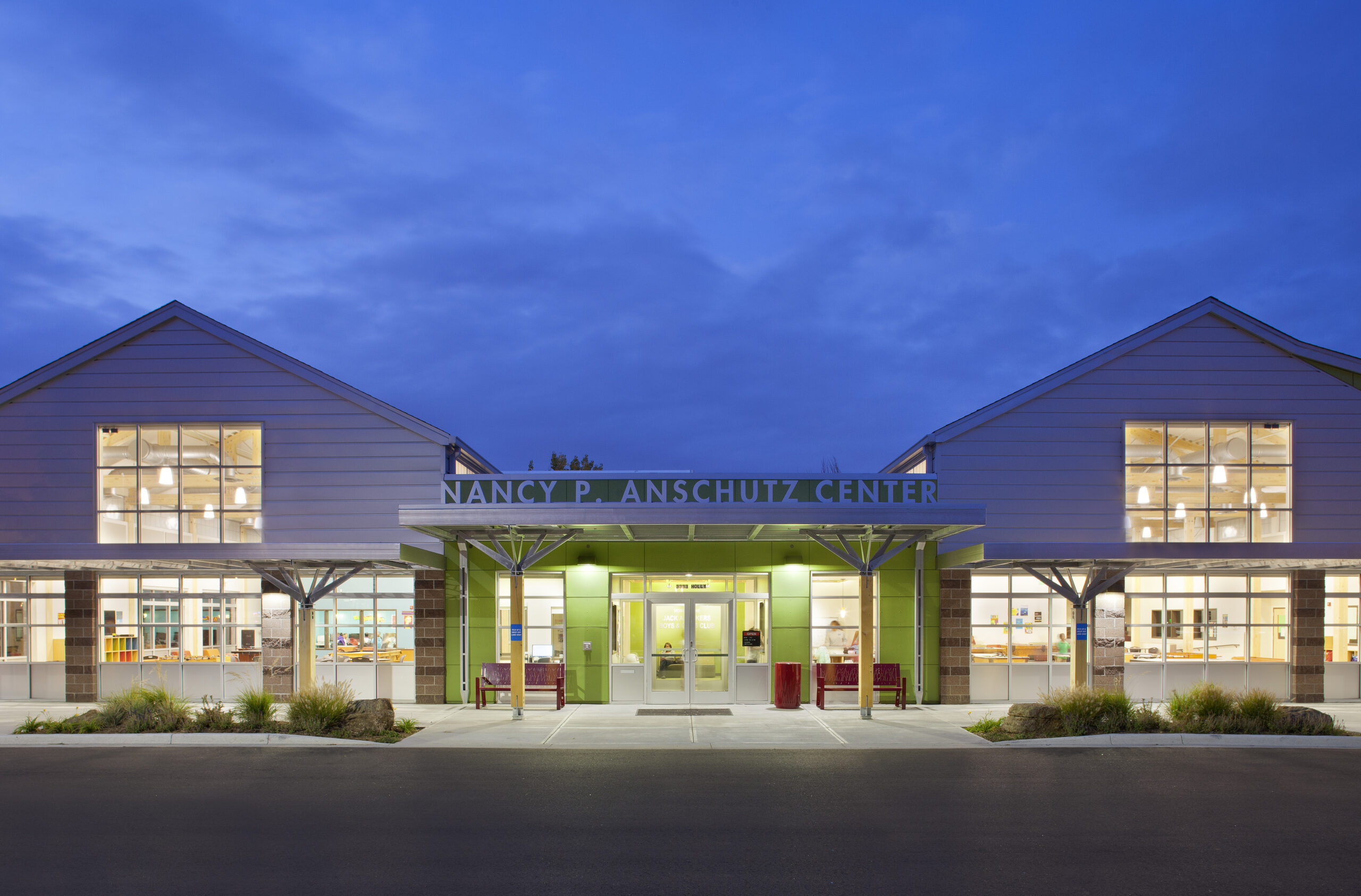 Conceived out of the ashes of a gang-related arson, the Nancy P. Anschutz Center now houses the Jack A. Vickers Boys and Girls Club, as well as offices of the Prodigal Son Initiative, thereby providing new opportunities for the community surrounding the deserted arson site. The building is a one-story steel-and-timber frame structure of approximately 30,000 square feet.