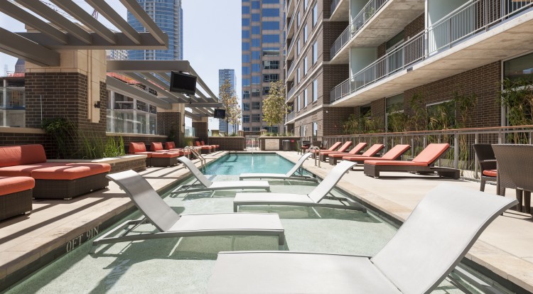 Adding to the downtown Austin skyline, this new 16-story 282,000 SF apartment tower located at the corner of 3rd and Brazos streets includes 268 multi-family units, 10,000 SF of ground-floor commercial lease space, and a 130,000 SF parking garage. The 11 stories of residences are constructed over a 5-story cast-in-place concrete parking garage. Exterior materials include natural stone veneer at the street level, a combination of brick, stone and glass at the residential units and infill aluminum screens at the parking garage. Upscale amenities include an expansive pool and deck, fitness center, business center, coffee bar and lounge.